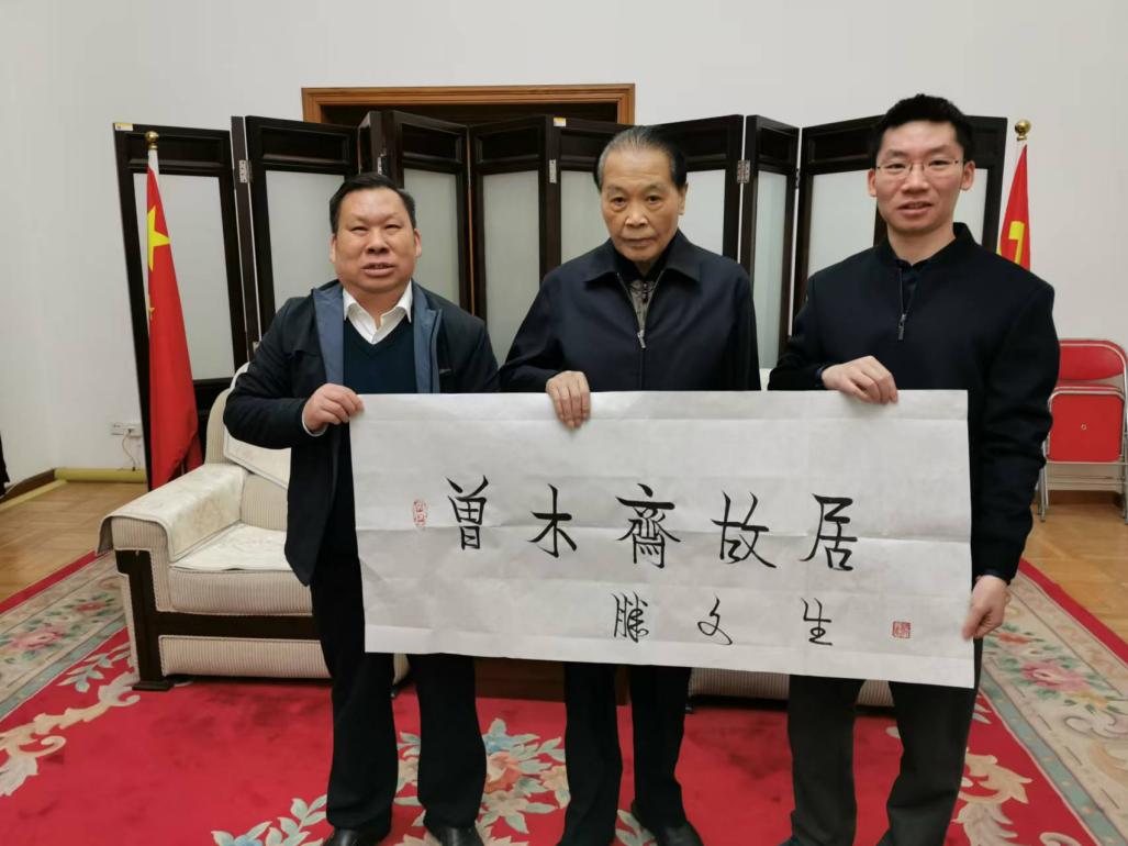 近日,原中共中央委員、中央政策研究室原主任、原中央文獻(xiàn)研究室主任滕文生在中央文獻(xiàn)研究室接見“朱毛井岡山會師”開路總指揮曾木齋烈士后人曹傳禮父子,并為“曾木齋故居”題字。
